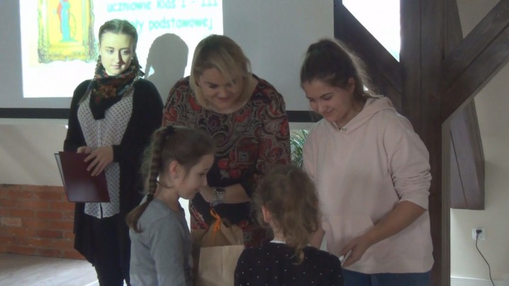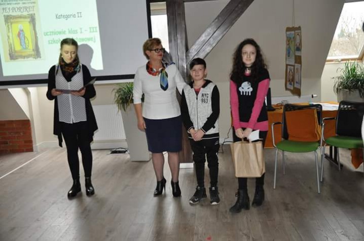 W kategorii Przedszkole i Klasy I - III komisja podjęła "salomonowy" werdykt i przyznała nagrody zespołowe. W ten sposób wszystkie startujące w konkursie dzieci uhonorowane zostały słodyczami. Delegacje z dumą odbierały dyplomy i paczki z rąk P. Marty Budzińskiej i p. Wiesławy Grzegowskiej, którym asystowali radni MRM.
