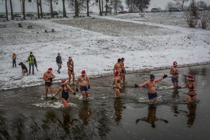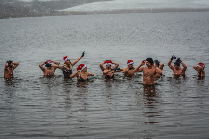 Uczestników Dzierzgońskiego Morsowania, które odbyło się w jeziorze Kuksy ogarnęła Magia Świąt w śniegu i mikołajkowych czapeczkach truchtem rozpoczęto rozgrzewkę po czym uczestnicy wskoczyli do wody, z uśmiechami na twarzach.