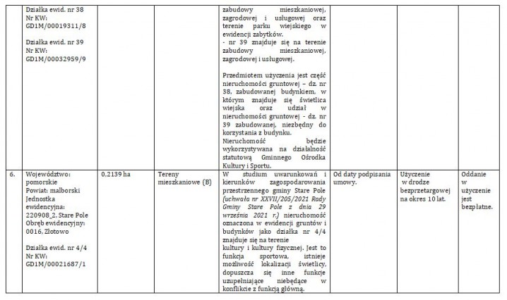 Wójt Gminy Stare Pole, Marek Szczypior działając na podstawie art. 35 ust. 1 i 2 ustawy z dnia 21 sierpnia 1997 r. o gospodarce nieruchomościami (t. j. Dz. U. z 2020 r. poz. 65 ze zm. ) podaje do publicznej wiadomości wykaz nieruchomości przeznaczonych do oddania w użyczenie.