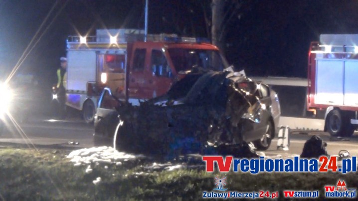 "42 - letni kierowca samochodu osobowego poniósł śmierć na miejscu. Jechało nim 19 osób, 13 jest rannych, dwie są w stanie ciężkim."